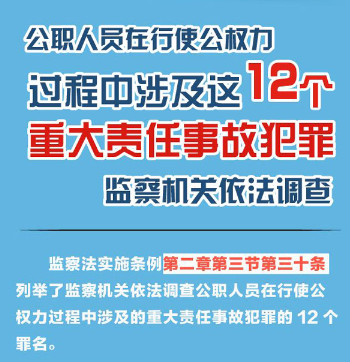 图解监察法实施条例丨公职人员在行使公权力过程中涉及这12个重大责任事故犯罪,监察机关依法调查