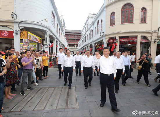 习近平总书记12日赴广东考察调研。当天下午,他首先考察了潮州市广济桥、广济楼、牌坊街,察看文物修复保护、非遗文化传承、文旅资源开发等情况。随后,习近平前往潮州三环(集团)股份有限公司,了解企业自主创新和生产经营情况。(文字记者:张晓松、朱基钗 摄影记者:鞠鹏、王晔、李响)
