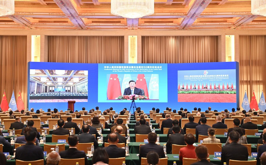 在中华人民共和国恢复联合国合法席位50周年纪念会议上的讲话