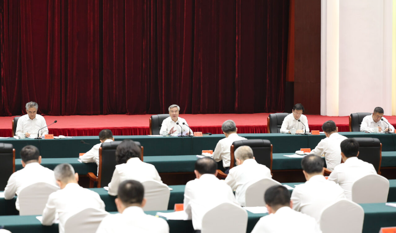 7月2日至5日,中共中央政治局常委、中央纪委书记李希到山西调研。这是7月4日,李希在太原主持召开座谈会,了解纪检监察机关深入推进全面从严治党、正风肃纪反腐、开展党纪学习教育等情况,并听取意见建议。 新华社记者 丁海涛 摄