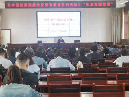 为深入推进党史学习教育,北林区纪委监委举办了“听取专题党课”“观看红色影片”活动。
